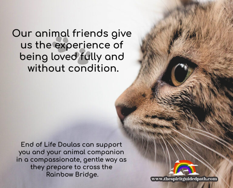 As someone who has had the honour of supporting many people as they grieve the death of their beautiful animal friends, I feel it is important to know that you do not have to face their transition alone. A Death Doula can help you plan and prepare a vigil for your animal family member much like we would do for our human loved ones. Just as many people choose to die at home, our animal companions want the same if at all possible, surrounded by the scents and sights they know and love, comforted and together with the people who were their entire world during their time here.